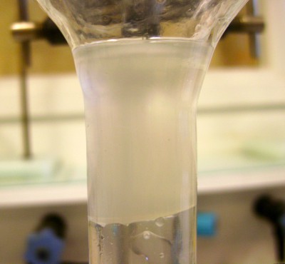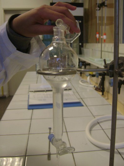 Enfin on extrait l'huile de la solution en plaçant celle-ci dans une ampoule à décanter (ci-dessous).